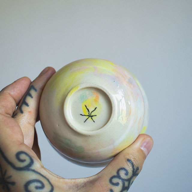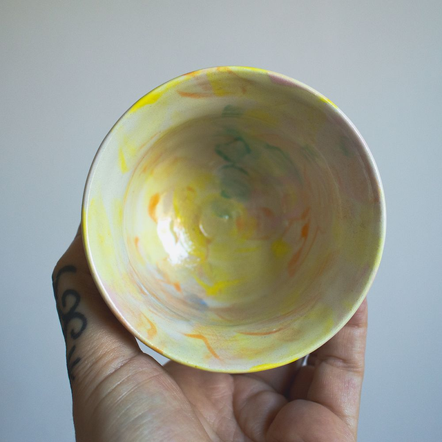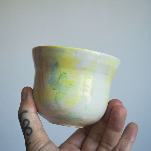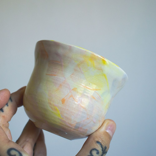 Gobelet forme à vagues, multicolore, émail transparent et brillant.